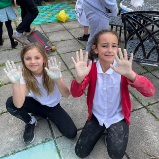 There’s lots of “doing” going on, such as: crafts, painting, modelling, games, music, sports and reading under huge umbrellas!